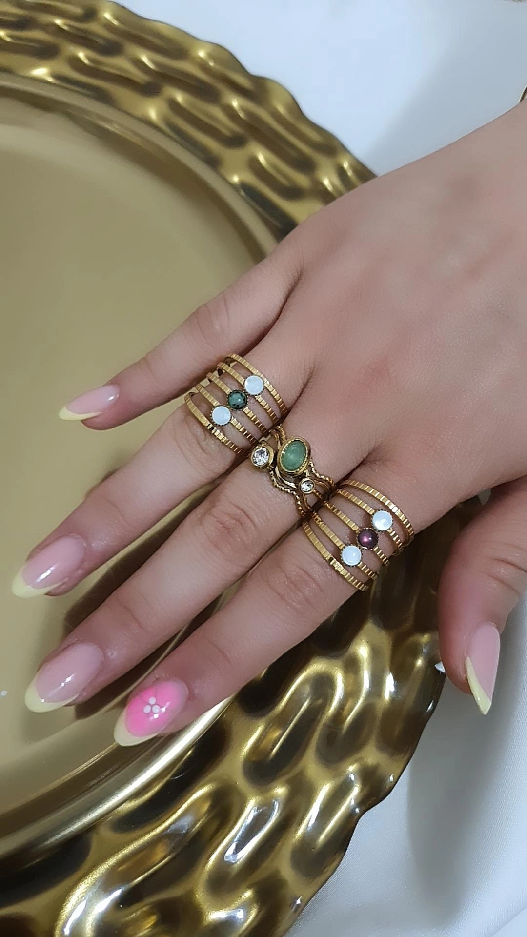 Çelik ayarlanabilir Yeşil tek taşlı yüzük