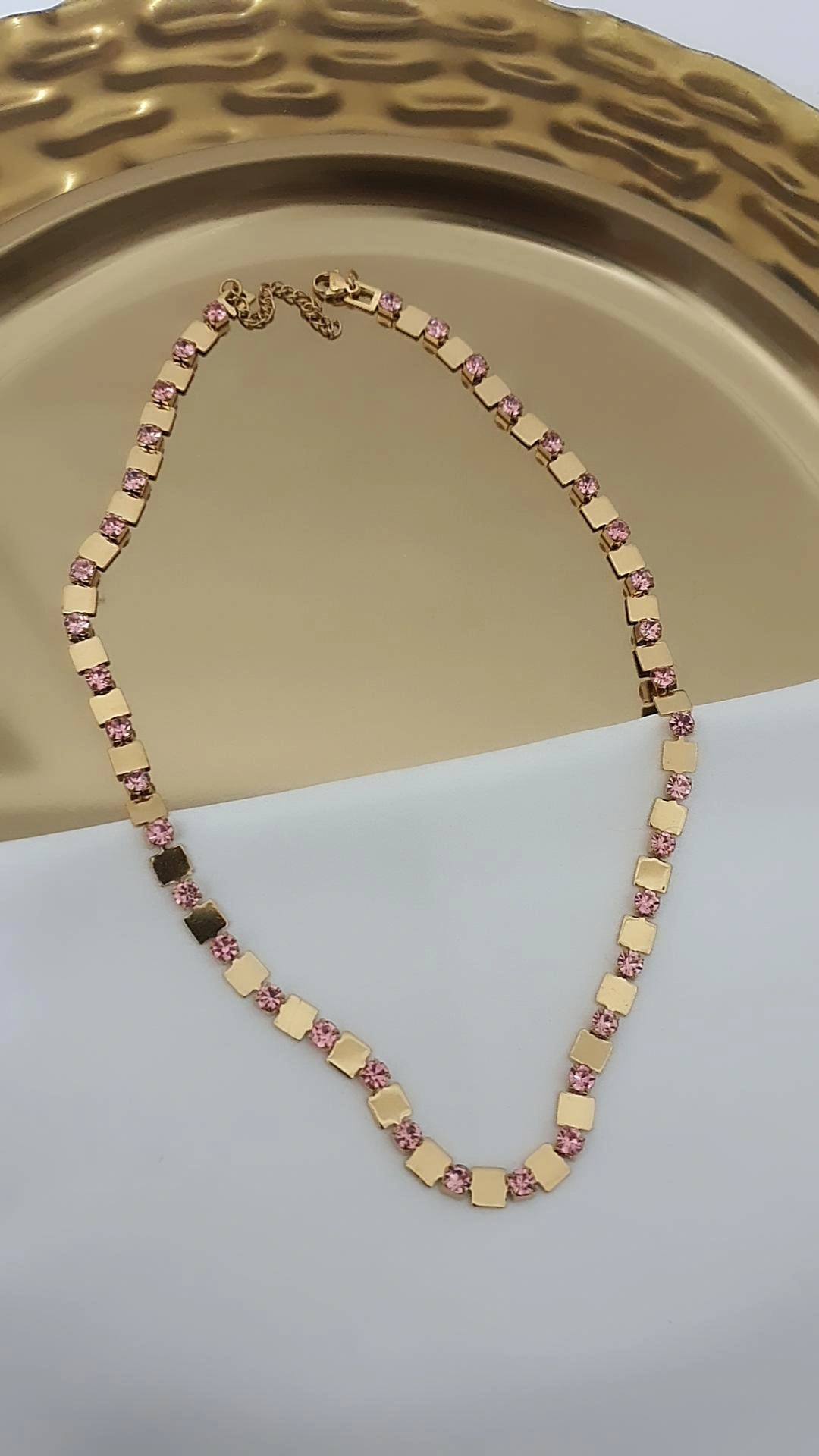 Çelik kare model Pembe tasli kolye